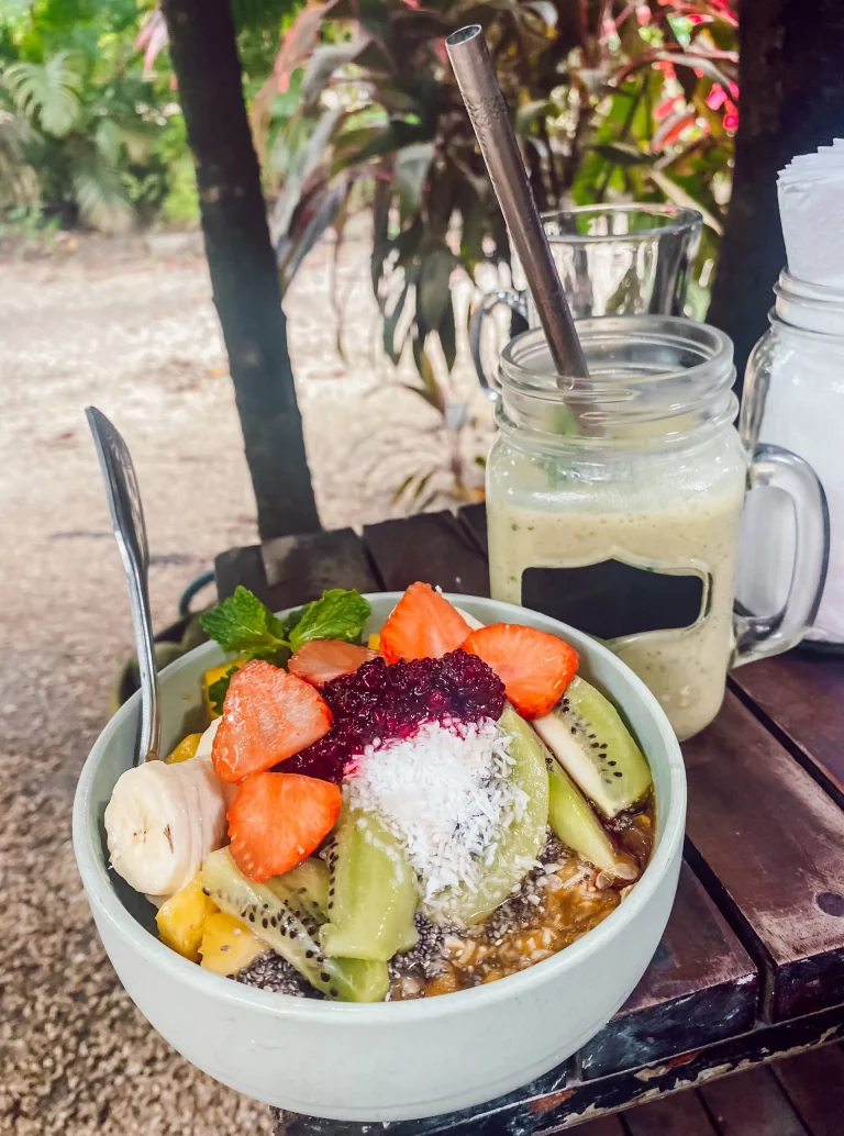 Jeden Morgen haben wir hier ein leckeres Frühstück genossen, von frischen Smoothie-Bowls und Obstsalat bis hin zu erfrischenden Smoothies und Trinkkokosnüssen.