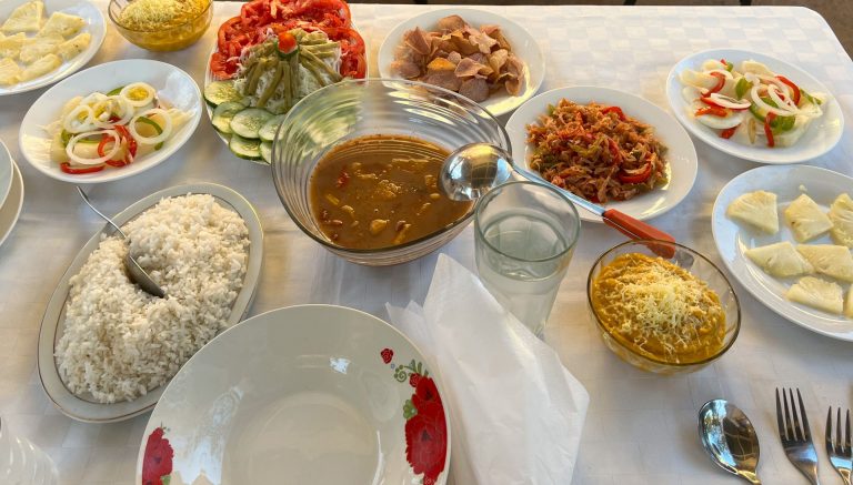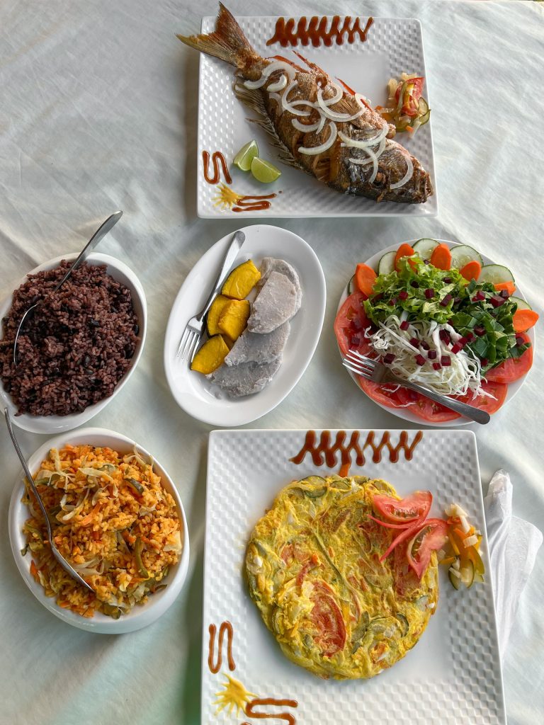 • Dinner: $10 per person, freshly prepared and varied daily (e.g., pumpkin soup, vegetables, beans, lentils, cassava)