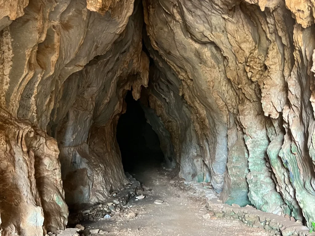 During our hike, the path led us up the mountain until we finally reached the cave. This cave serves as a shelter during disasters and features seating on both sides, as seen in the picture. Additionally, the cave is home to a population of bats.