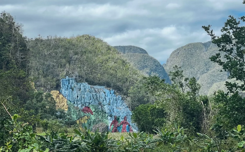 The Mural de la Prehistoria is a massive mural created between 1959 and 1962 on a limestone wall about 120 meters high and 160 meters wide in Viñales. It depicts the evolution of life in the region and is one of the area’s most well-known landmarks.