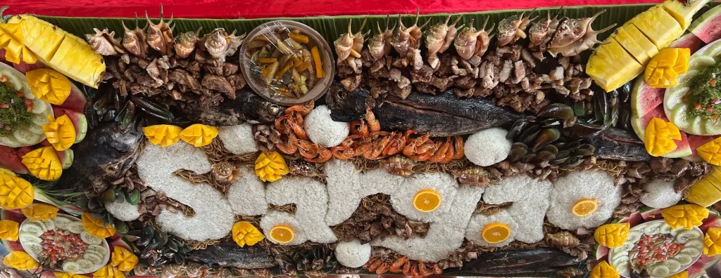 Auf Daku Island wurde uns ein Mittagessen serviert, bei dem der Tisch mit einer Vielzahl von Gerichten gedeckt war, und dazu gab es Getränke. Darüber hinaus hatten Besucher die Möglichkeit, an Ständen verschiedene Getränke wie frische Trinkkokosnüsse, Cocktails und Snacks zu kaufen