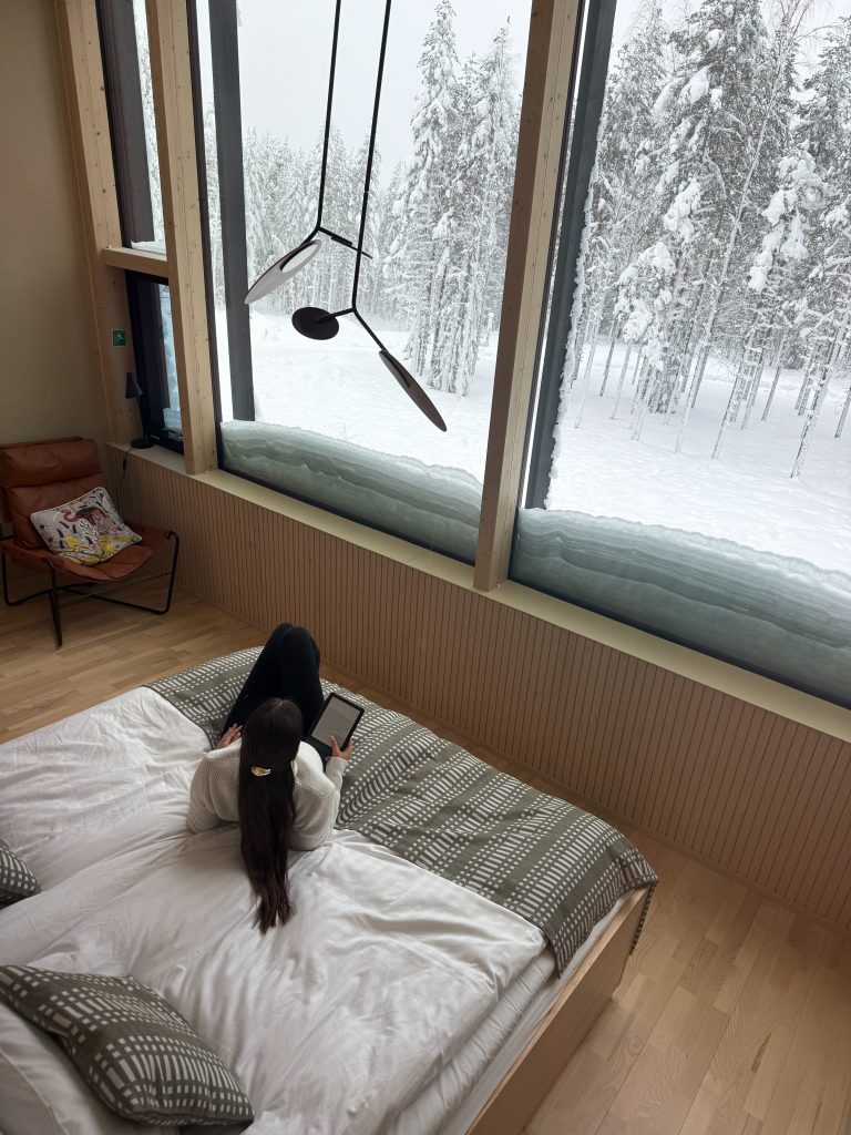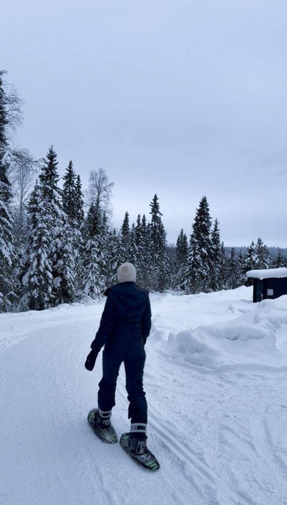 Die Tour führt durch verschneite Wälder und gefrorene Seen, weit weg von den Lichtern der Stadt. Ein ortskundiger Guide begleitet die Gruppe und sorgt dafür, dass jeder sicher unterwegs ist. Wir fuhren auf eine Lichtung, und über uns erschienen die Nordlichter am Himmel – ein unvergessliches Erlebnis. Selbst wenn die Aurora nicht erscheinen sollte, ist die Fahrt ein Abenteuer: frische Luft, offene Landschaften und die besondere Atmosphäre Lapplands.