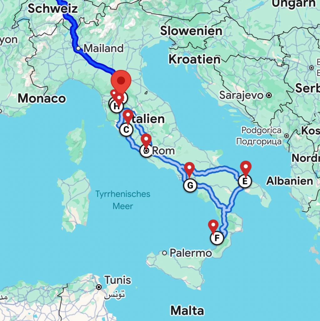 Im August 2023 haben wir uns einen Reisetraum erfüllt: eine zweiwöchige Rundreise durch Italien. Mein Partner und ich sind mit dem Auto von Frankfurt gestartet und haben einige der schönsten Orte des Landes besucht.