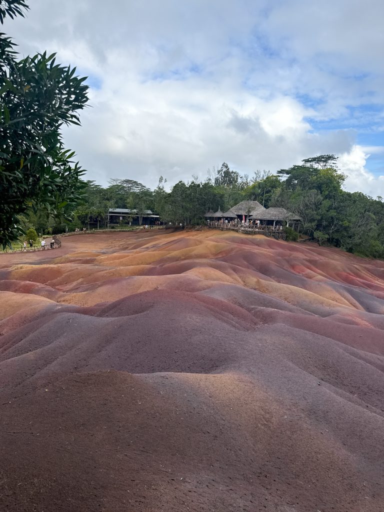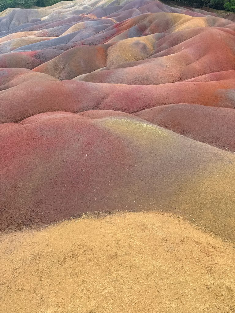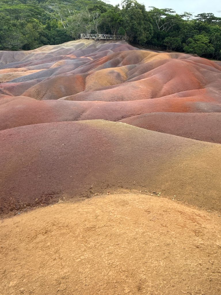 Die Siebenfarbige Erde von Chamarel liegt im Südwesten von Mauritius, umgeben von grünen Hügeln und tropischer Vegetation. Von Flic en Flac aus erreichst du das Naturwunder in etwa 40 Minuten mit dem Auto.