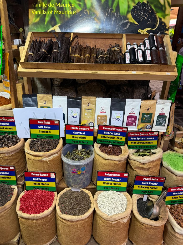 Einige der angebotenen Produkte, wie etwa der Kaffee, stammen nicht direkt von der Plantage, sondern werden nur unter deren Namen beworben, da sie Vanille enthalten. Wir fanden dieselben Artikel später in großen Supermärkten auf Mauritius, dort jedoch bis zu 50 % günstiger. Daher kauften wir nichts vor Ort und entschieden uns stattdessen für einen Einkauf in einem Vanille-Fachgeschäft, wo wir uns in Ruhe umsehen konnten.