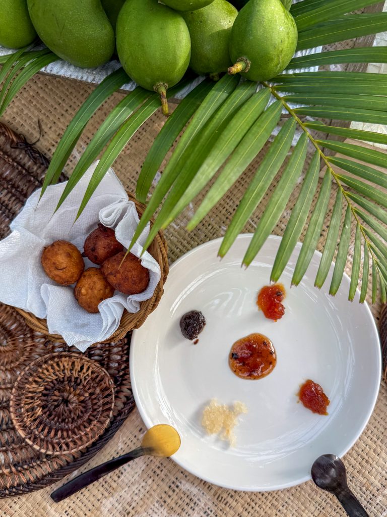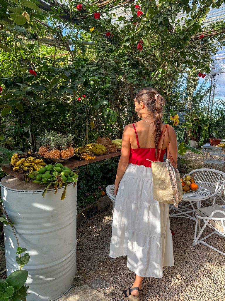 Am Ende der Führung erhielten wir verschiedene Kostproben: frisch gepressten Zuckerrohrsaft, mehrere hausgemachte Marmeladen und kleine Kokosbällchen. Dabei wurde auch gezeigt, wie die Marmelade vor Ort hergestellt wird. Anschließend führte der Weg in den Souvenirshop, in dem man die vorgestellten Produkte sowie Vanille, Gewürze und Kaffee kaufen kann.