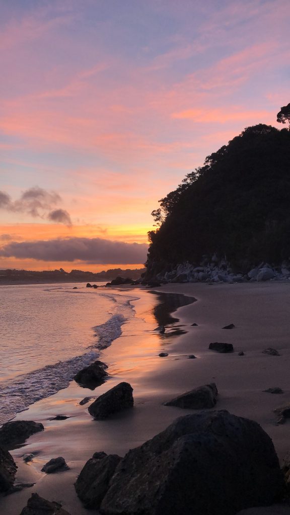 Feiner, goldener Sand, türkisblaues Wasser und dramatische Felsformationen, Hahei Beach gehört zu den schönsten Stränden Neuseelands. Eingebettet in eine geschützte Bucht auf der Coromandel-Halbinsel, lädt der Strand zum Schwimmen, Schnorcheln und Sonnenbaden ein. Je nach Lichteinfall schimmert der Sand stellenweise sogar leicht rosafarben, ein subtiler Effekt, der besonders bei Sonnenaufgang oder -untergang auffällt und dem Ort eine fast märchenhafte Stimmung verleiht.