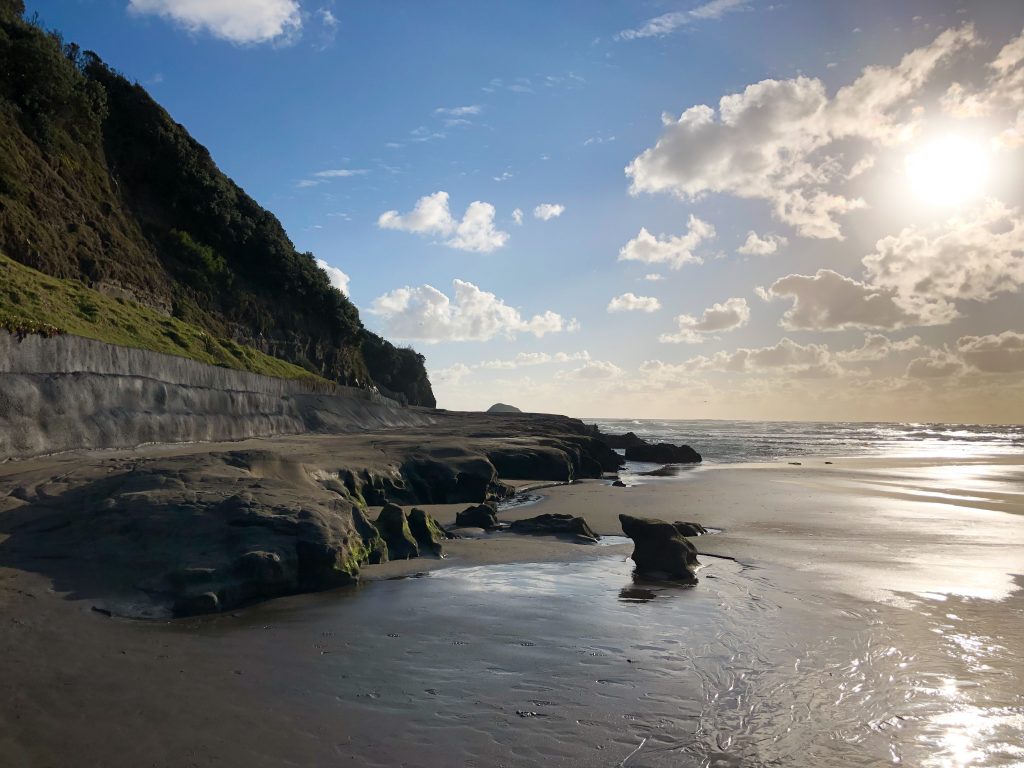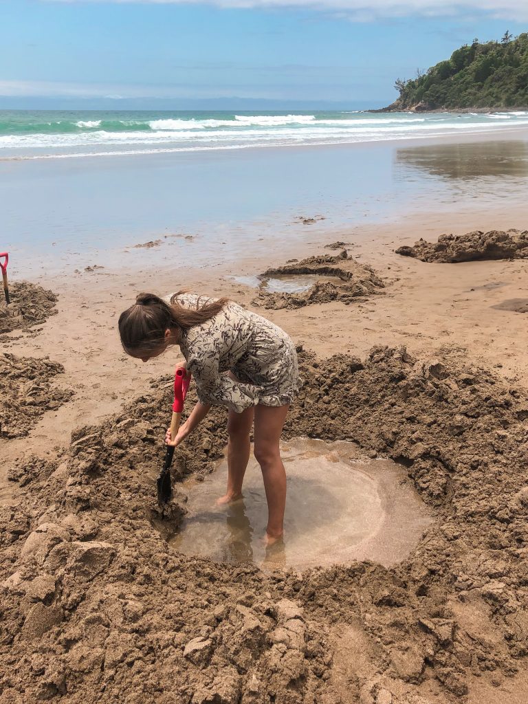 Das Phänomen tritt vor allem bei Ebbe auf, wenn der Wasserspiegel sinkt und die geothermische Wärme freigelegt wird. Alles, was du brauchst, ist eine Schaufel, die du im Café vor Ort für etwa 5-10 NZD ausleihen kannst. Mit dieser kannst du ein Loch in den Sand graben, das sich dann mit dem heißen Wasser füllt. In einigen Bereichen ist das Wasser so warm, dass du es fast wie in einem natürlichen Jacuzzi genießen kannst.