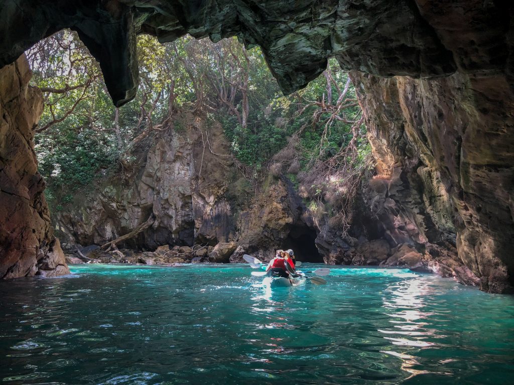 Von hier aus lässt sich auch die berühmte Cathedral Cove in etwa 45 Minuten zu Fuß erreichen, ein absolutes Highlight mit ihrer natürlichen Felsenkathedrale und glasklarem Wasser. Alternativ bieten sich Kajaktouren entlang der Küste an, bei denen man versteckte Buchten und kleine Höhlen entdecken kann.