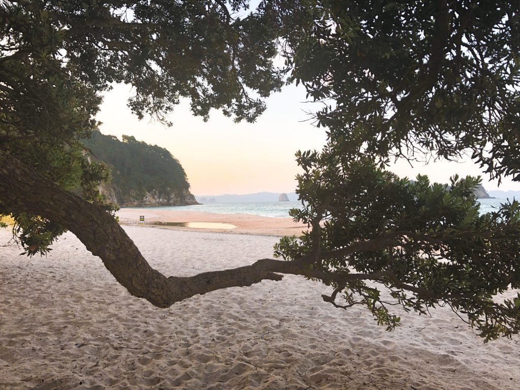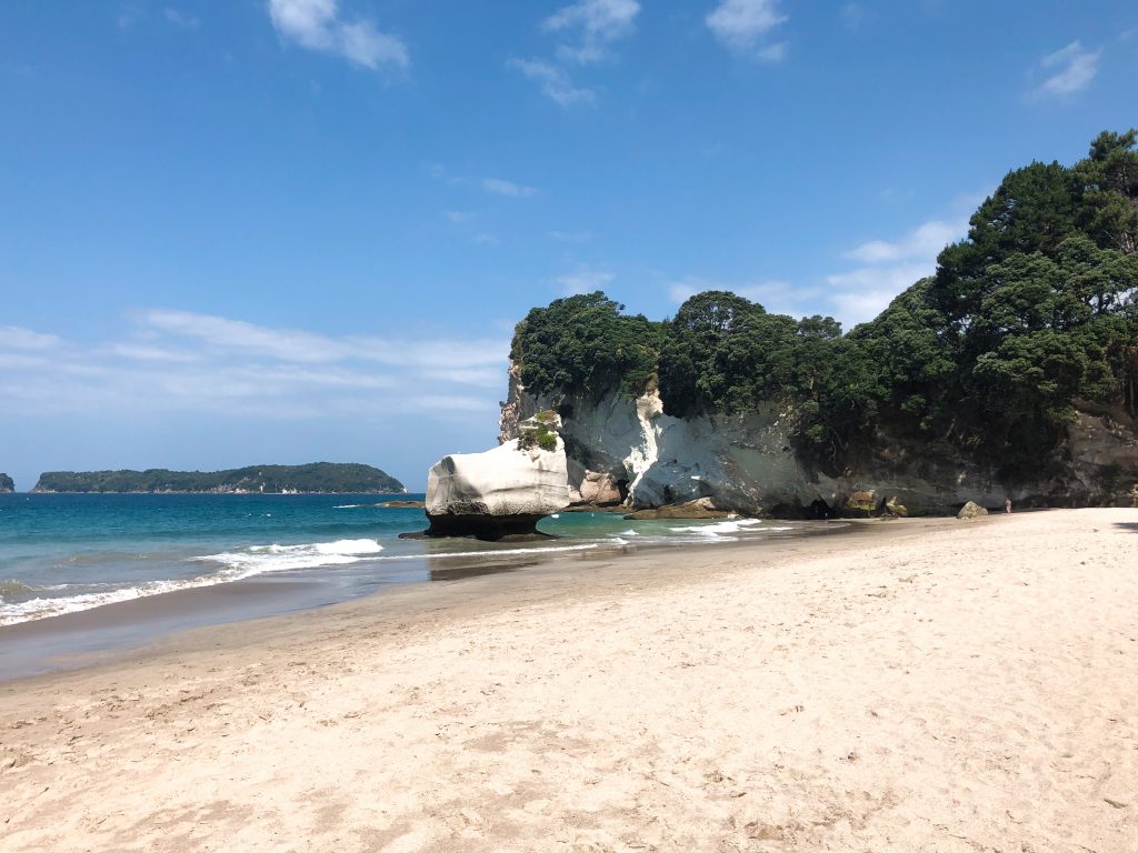 Der Strand von Hahei selbst bietet weißen Sand, klares Wasser und eine entspannte Atmosphäre, fernab vom Massentourismus. Direkt vor der Küste liegt das Te Whanganui-A-Hei Marine Reserve, das sich ideal zum Schnorcheln und Tauchen eignet.
