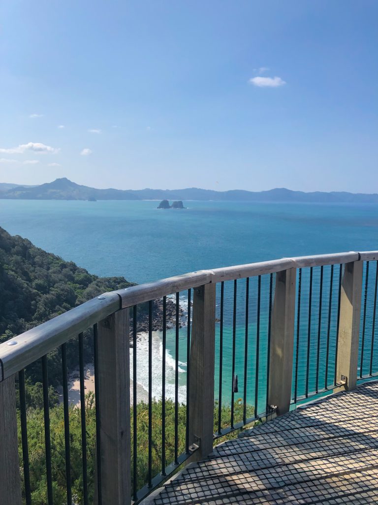 Wir fanden es angenehm ruhig dort, ein netter Fotospot mit Blick auf die Landschaft der Coromandel-Halbinsel.