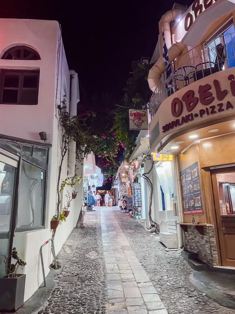 Ein Spaziergang durch die engen Gassen von Fira lohnt sich, hier findest du viele kleine Boutiquen, Souvenirläden und gemütliche Cafés. Perfekt, um die lebendige Atmosphäre der Stadt zu genießen. Wer eine süße Erfrischung sucht, sollte unbedingt ein Eis probieren! Am Abend laden zahlreiche Bars dazu ein, den Tag mit einem Cocktail und einem spektakulären Blick auf das Meer ausklingen zu lassen.