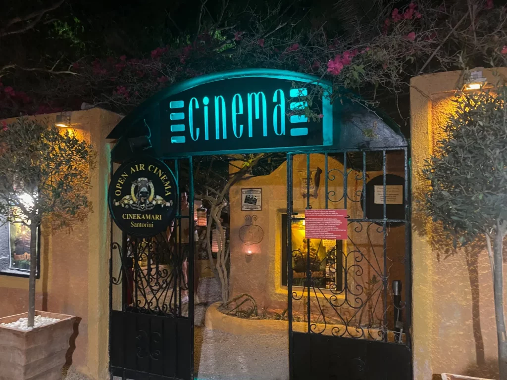 Das Open-Air-Kino in Kamari ist ein echtes Highlight und bietet ein einzigartiges Kinoerlebnis unter freiem Himmel. Umgeben von Palmen und stimmungsvoller Beleuchtung, ist es der perfekte Ort für einen entspannten Abend auf Santorini.