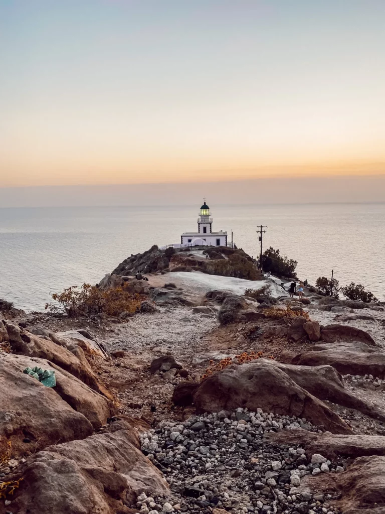 Der Akrotiri-Leuchtturm befindet sich an der südwestlichen Spitze von Santorini und bietet eine der schönsten Aussichtspunkte der Insel.