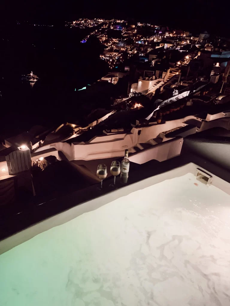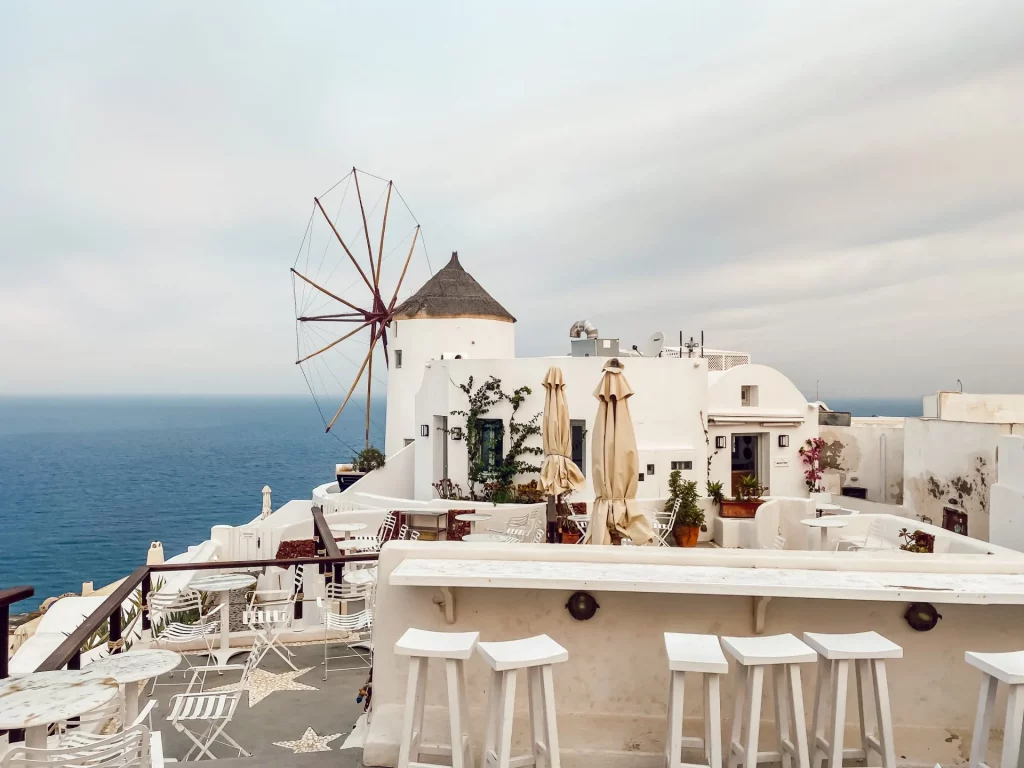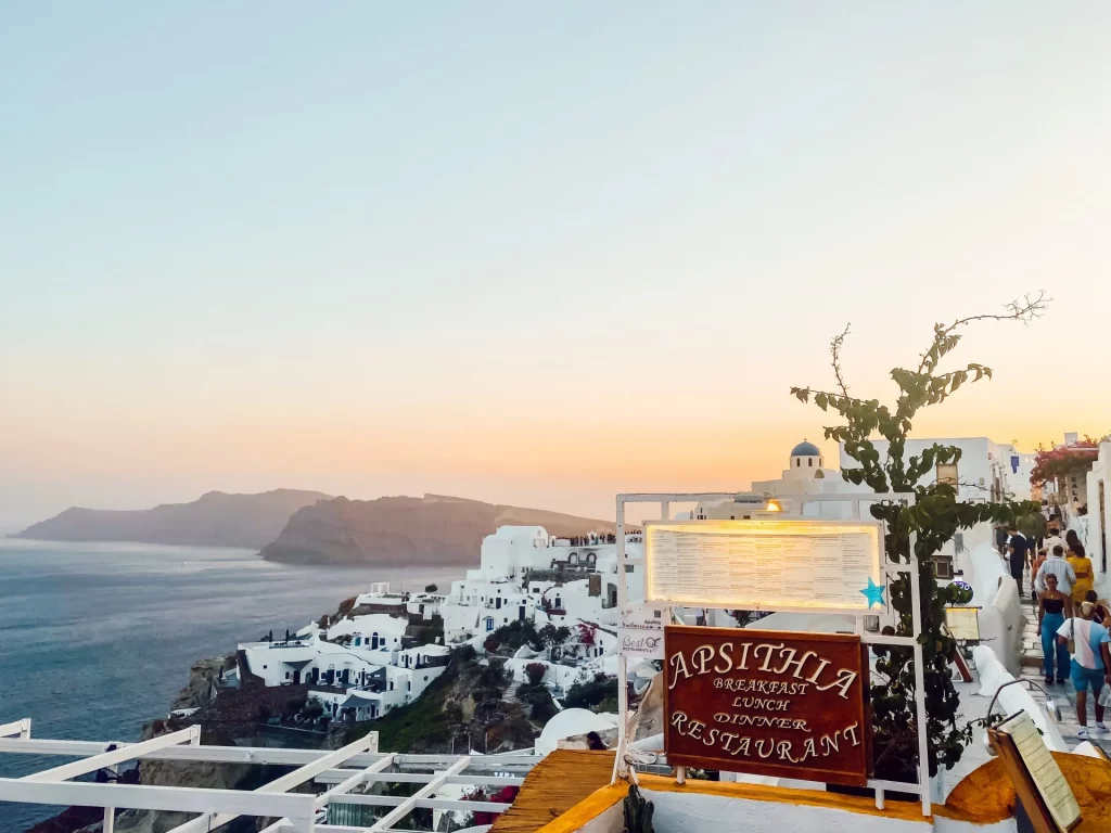 Die typischen Aussichtspunkte in Oia sind oft überfüllt, und die Menschenmengen können die Atmosphäre trüben. Stattdessen empfehlen wir, den Sonnenuntergang entspannt in einer gemütlichen Bar, einem Restaurant oder direkt von der eigenen Unterkunft aus zu genießen. So kannst du das Spektakel in Ruhe erleben, mit einem kühlen Drink in der Hand und ohne den Trubel.