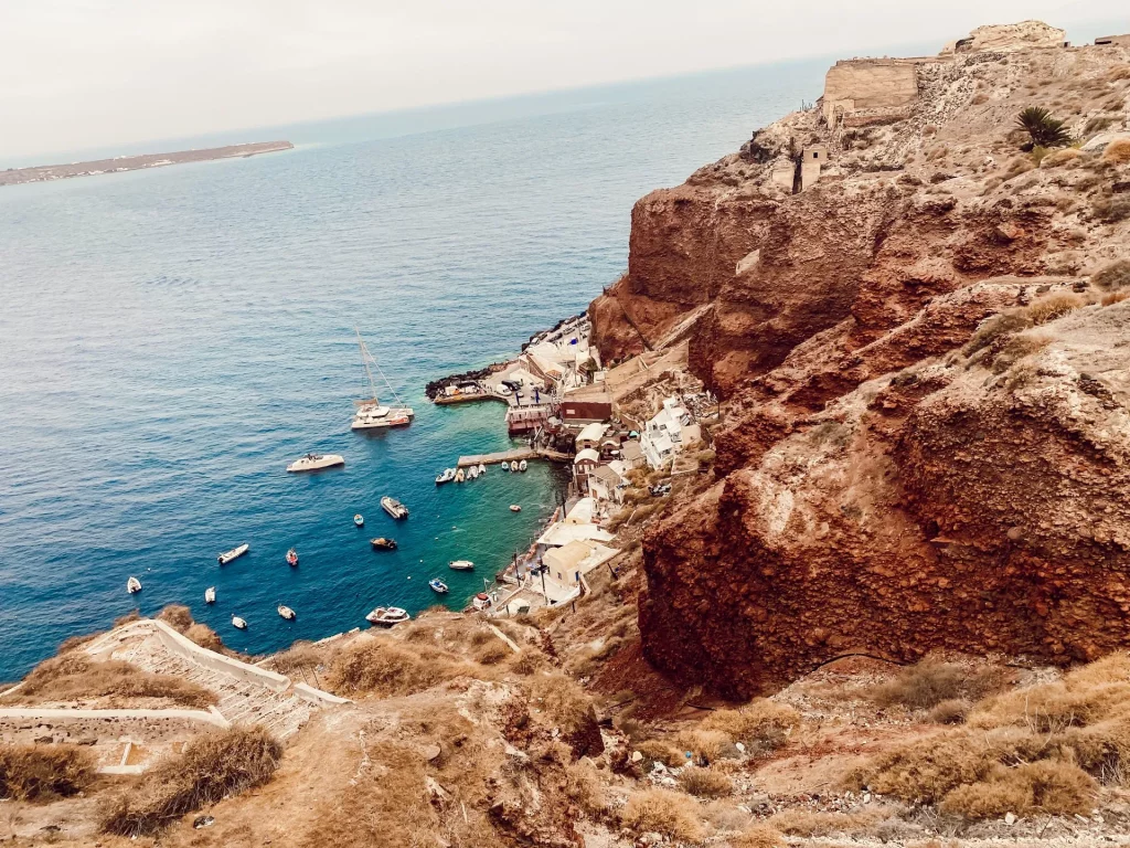 Falls du dir den Aufstieg sparen möchtest, kannst du ein Taxi oder ein Boot zurück nach Oia nehmen.