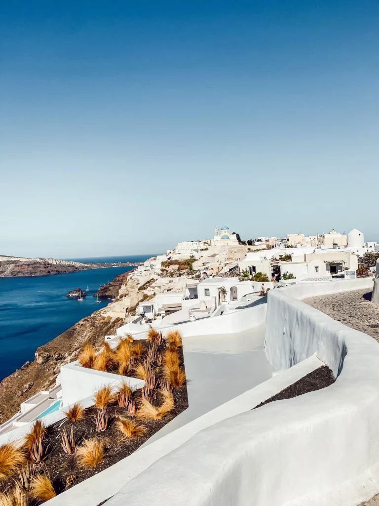 Die Hauptstadt Fira liegt hoch auf den Klippen der Caldera und bietet einen beeindruckenden Blick auf das blaue Meer. Der malerische Ort Oia, bekannt für seine traumhaften Sonnenuntergänge, ist ein weiteres Highlight der Insel. Neben luxuriösen Hotels und traditionellen Tavernen gibt es zahlreiche historische Stätten, wie die Ausgrabungen von Akrotiri, die einen Einblick in die minoische Vergangenheit Santorinis geben.