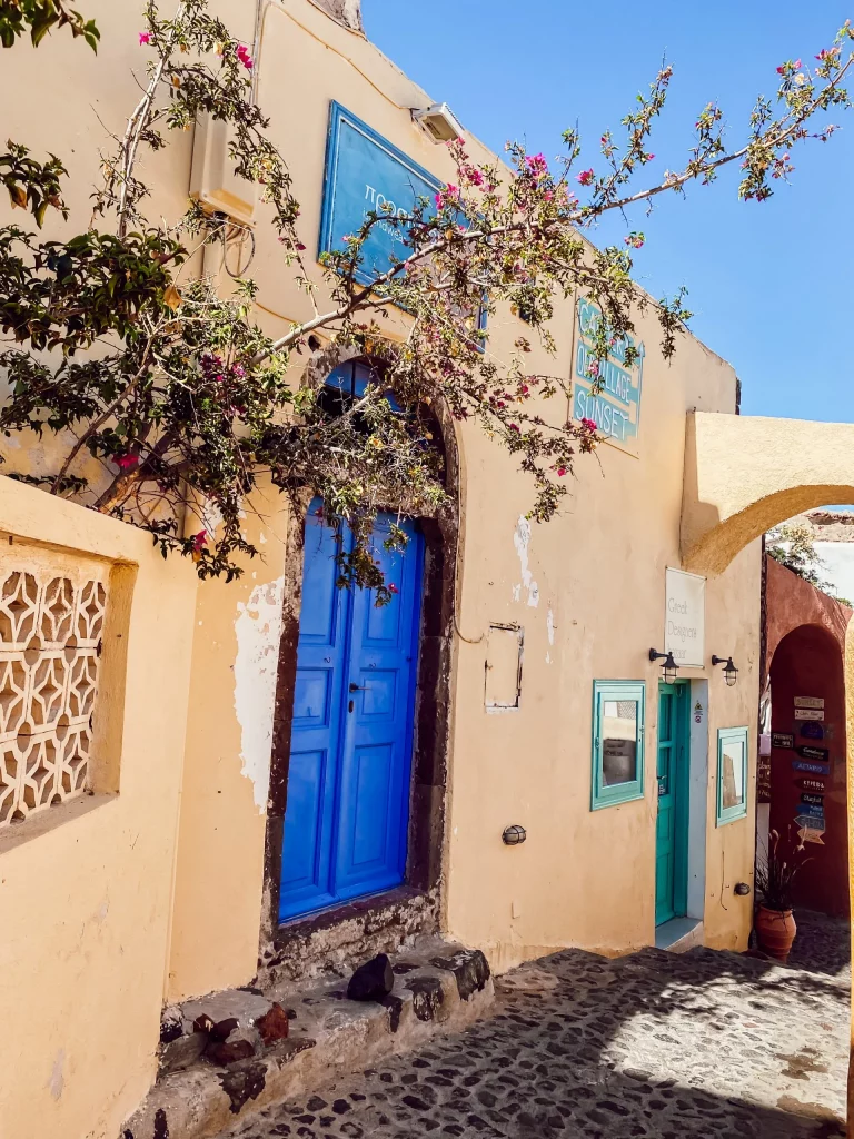 Um dem Touristenansturm in Oia zu entgehen, empfehle ich einen frühen Morgenspaziergang durch das malerische Örtchen. Um 7 Uhr morgens startete ich meine Erkundungstour mit meiner Kamera in der Hand und konnte Oia ohne den Trubel der Massen genießen. Einige entzückende kleine Cafés und Läden waren schon geöffnet und ich konnte die Ruhe und Leere des Ortes ganz anders wahrnehmen.