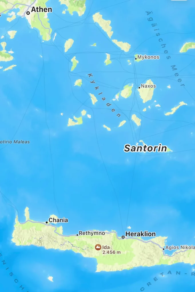 Santorini, eine der bekanntesten Inseln der Kykladen, liegt im Ägäischen Meer und begeistert mit ihrer beeindruckenden Vulkanlandschaft, weißen Häusern mit blauen Kuppeln und spektakulären Sonnenuntergängen. Die Insel entstand durch einen Vulkanausbruch und bietet heute eine einzigartige Mischung aus Natur, Geschichte und griechischer Gastfreundschaft.