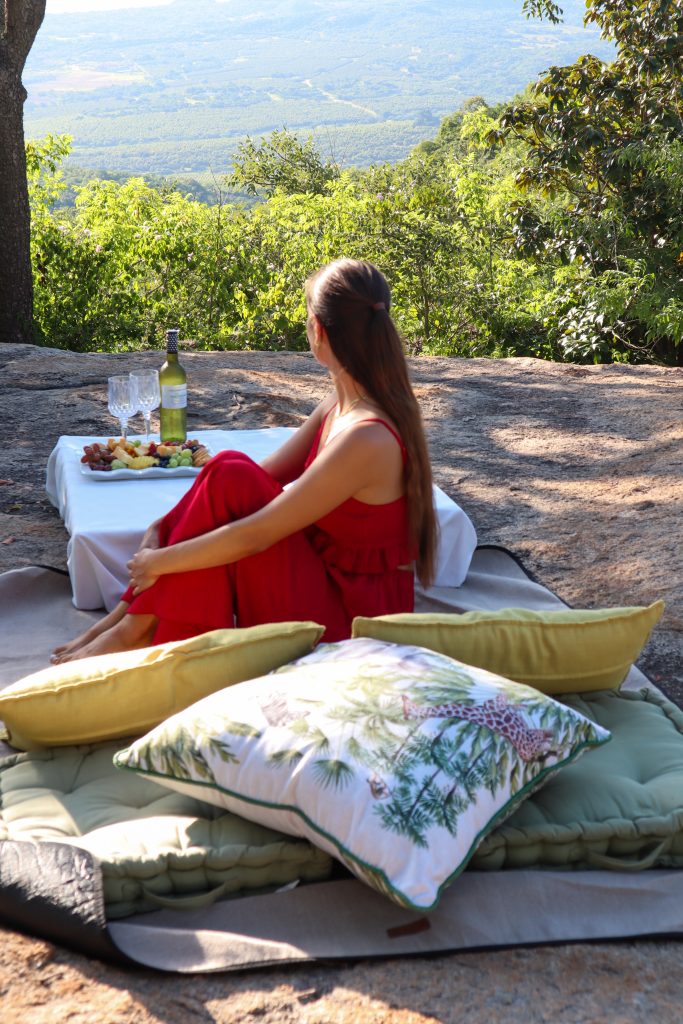Nach einer kurzen Fahrt im offenen Safari-Fahrzeug wurden wir zu einem der schönsten Picknickplätze in der Umgebung gebracht. Mitten in der Natur, umgeben von atemberaubender Landschaft, war bereits ein liebevoll gedeckter Tisch für uns vorbereitet.