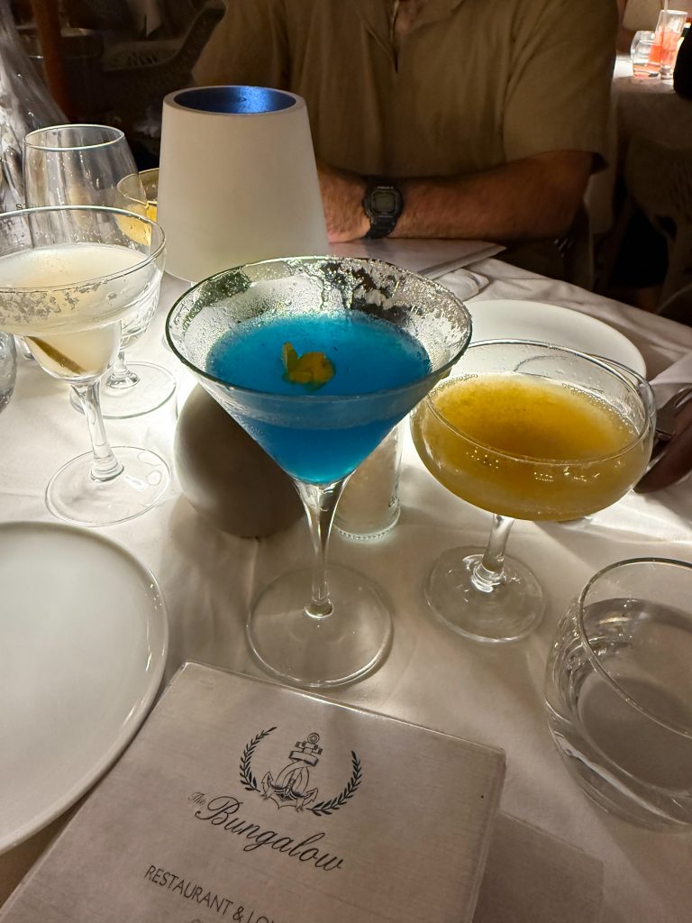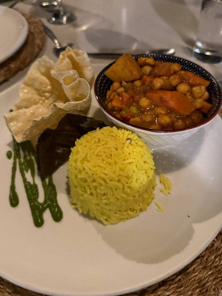 Jeden Abend gab es ein festgelegtes Menü mit Vorspeise, Hauptgang und Dessert, immer auch mit einer vegetarischen Option. Dazu bestellten wir uns traditionell ein Glas Wein und einen Margarita – die perfekte Begleitung zum Essen. Zweimal pro Woche wurde das Menü durch ein BBQ-Buffet ersetzt, das ebenfalls vegetarische Alternativen bot.