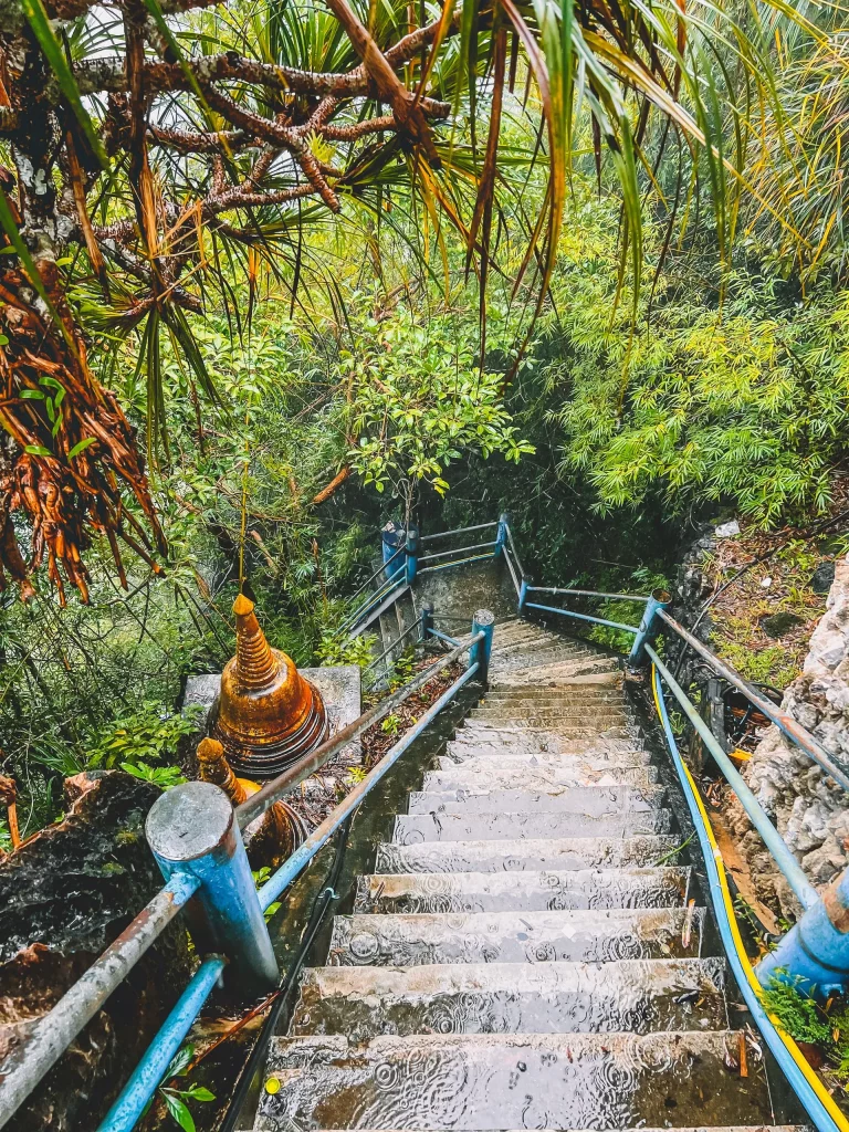 Für Abenteuerlustige ist der Huang Nam Keaw Waterfall besonders spannend. Bis 2012 war er nur über einen Dschungelpfad erreichbar, mittlerweile gibt es eine Straße dorthin. Dennoch bleibt der Weg durch den tropischen Wald ein Highlight für alle, die gerne wandern.