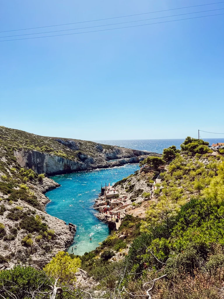 Porto Limnionas ist eine atemberaubende, von Felsen umgebene Bucht an der Westküste von Zakynthos, die sich perfekt für Schnorchelliebhaber eignet.