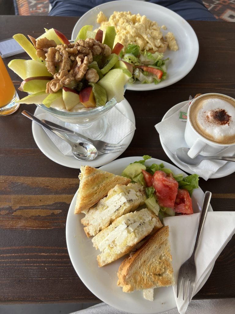 Frühstück sowie griechische Spezialitäten zum Mittag- und Abendessen.